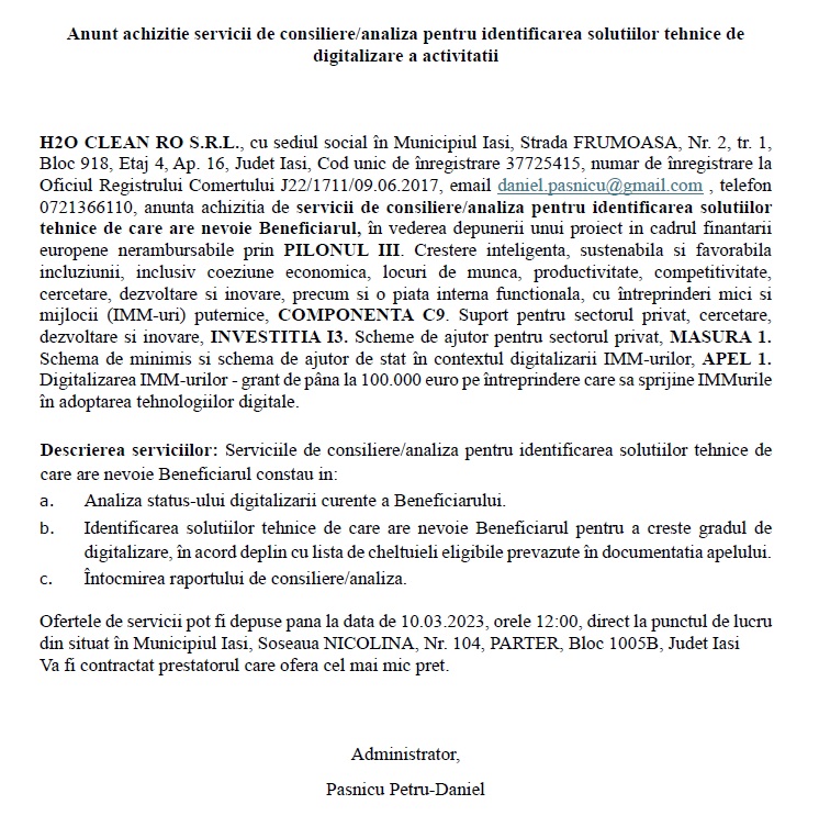 Campanie de ajutorare desfășurată în perioada 25 mai-15 iunie. Nouă, celor de la H2O Clean, ne place să ne ocupăm de covoarele, hainele, papucii sau chiar a tapițeria ta. Însă și mai mult ne place să ne ocupăm de nevoile reale ale oamenilor din jurul nostru, de aceea am ales să continuăm să ne implicăm în comunitate […]